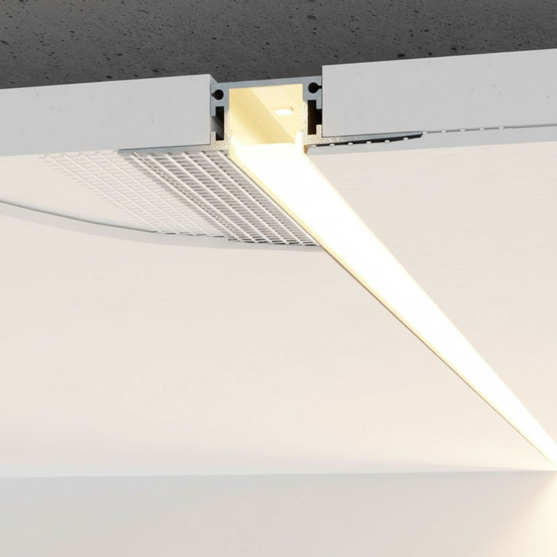 Nevidljiva Ugradnja (Trimless): Perforirana krilca sa strane služe za fiksiranje i nanošenje glet mase. Nakon obrade i krečenja, aluminijumski rub profila postaje nevidljiv, ostavljajući samo elegantnu liniju svjetlosti koja kao da “izvire” iz arhitekture prostora.