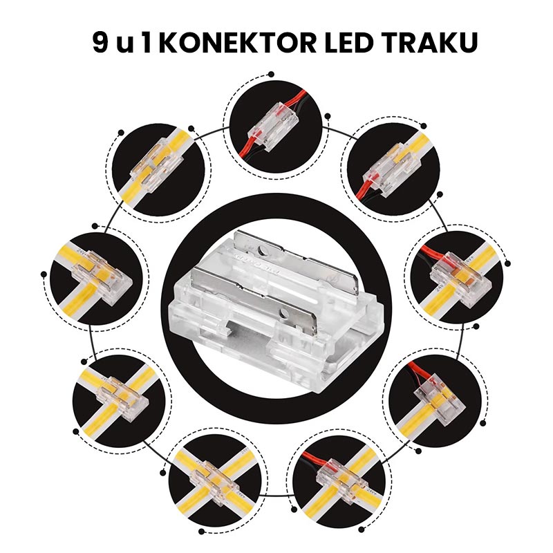 Grudis Univerzalni 9u1 Transparentni Konektor za LED Trake (COB & SMD, 8mm)