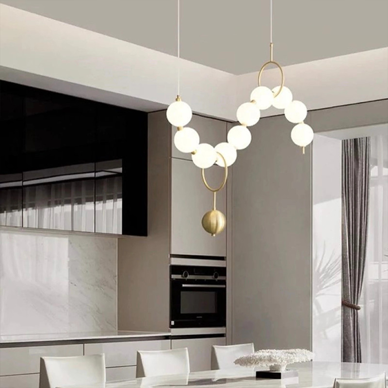 Solara je savremena visilica koja odiše rafiniranim dizajnom i geometrijskom harmonijom. Njena dinamična kompozicija, formirana od niza matiranih staklenih kugli raspoređenih u zaobljenom zavoju, čini je istovremeno umjetničkim i funkcionalnim rasvjetnim tijelom. Idealan je izbor za moderne enterijere kojima je potreban upečatljiv centralni akcenat.